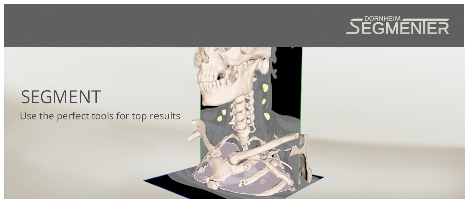 Dornheim Segmenter is a cross-platform software for the visualization, segmentation and analysis of volume data sets from medicine, industry, materials science and many other areas. It was developed in close collaboration with scientists and users of various disciplines and provides easy-to-use tools for viewing, analysis, segmentation, post-processing, and presentation of natural and industrial 3D data. It is especially known for its straightforward and efficient way of segmenting and controlling regions and structures directly in 3D.